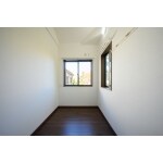 1階寝室です。 元々は和室で、押入れをクローゼットに。向かって右の空間には、持ち込みの家具を入れることになっています。 掃き出し窓にし、中庭への出入り可能です。