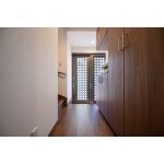 2世帯分の玄関廻り収納になります。シューズクローゼットだけでは足りないので、他に大物が入るクローゼットを造るご提案をさせて頂きました。 玄関ドアは、何パターンかご提案し選んで頂きました。