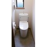 トイレ交換しました。以前のタイプよりも便器の凹凸が少なく、滑らかなフォルムなので、掃除がしやすいです。天井・壁はクロスを貼替え、床はクッションフロアを張替えました。お客様のご要望で床をグレーにしました。都会的な雰囲気になりました。