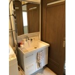 サッカーをやっているお子様のユニフォームなどを広々ボウルで快適に手洗いできます。 収納もたっぷり、三面鏡も今までより大きく感じます。