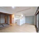 キッチンの間仕切り壁によって圧迫感を感じます。クロスの経年劣化・フローリングの色が暗いため空間全体も暗く感じてしまいます。