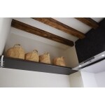 既存のキッチンが暗く、寝室が明るかったため日当たりを考慮して間取りを反転させ、明るく開放的なキッチン空間をご提案しました。 キッチンは、収納力がたっぷりで機能的に使えてお手入れも楽なPanasonicのラクシーナを採用しています。隣接しているリビング空間の雰囲気とも合うスタイリッシュでかっこいいヴィンテージメタルな扉柄もポイントです。また、LDKのアクセントとして天井に造作梁を施工しています。空間の表情を柔らかくしてくれていて、とても気に入っていただけました。