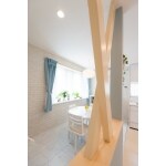 一番光が差し込む場所に水回りがありLDKがとても暗いスペースになっていたので、家の裏側(東)に水回りを集中させて道路に面する場所に大きな出窓を取りました。出窓近くには奥様の憧れだった朝食スペースを作りフレンチスタイル空間に!また他にも もうひとつのリビングスペースや和室にちょっとしたデザイン空間を提案。将来的に奥様がお料理教室をされたいという2階にもキッチンを増設しました。