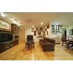 (旧株式会社ハウスドゥでの事例です。)「インテリアにもこだわった大人の空間になりましたね」バリアフリー仕様のフロアには、自然な優しい色合いが特徴の無垢メイプルフローリングを採用しました。お悩みだった寒さ対策のため、床暖房も設置しました。床と色合いを合わせた扉に、奥様の念願だった、こげ茶色の飾り棚や造作家具をアクセントに。柔らかな光を反射する白い壁にはガラスブロックを埋め込み、明るさとデザインを両立させました。リビングにもたっぷりの収納スペースを作り、荷物が多くてもすっきりとした空間になるようプランニングしています。リビングから続くキッチンの壁は、ガラスブロックと同系の明るいグリーンで遊び心を演出。トイレは落ち着いたブラウンで統一し、限られた空間で棚を造作。時には読書コーナーにもなるご主人のこだわりの空間になりました。 ご夫婦の想いと希望の沢山つまったとても素敵な住空間になりましたね。いつまでもお幸せにお過ごしください。