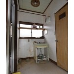 左側は浴室のドア・右側はトイレのドア・正面は洗面台と洗濯機・入口は引戸という造りの為、決して狭小スペースの洗面室で無いにも関わらず、物も一切置けない状態でした。 第一は水回りの出入口と言う事で、トイレへの出入口も合わせた造りになっていた部分を改修し、なんとか独立した洗面・脱衣室スペースの確保をご提案しました。