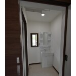 窓はプライバシー面の考慮もあり必要量の採光と換気が出来るタイプに変更しました。 洗面台や洗濯機の位置の変更はありません。 窓を小さくした事で表面にも物が置ける洗面化粧台の設置が実現しました。 右側が壁となった事で、有効スペースが確保できたため、使う人次第でアレンジできるスペースになりました。