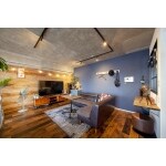 クラフト感のある壁とアクセントウォールが引き締めるリビング