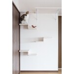 お施主様のリクエストの1つである、猫ちゃんがLDKのどこでもくつろげるよう、キャットステップ&キャットウォークをご提案。壁に沿って窓際まで行くことができるようにしました。