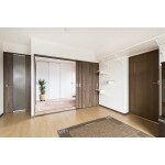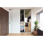 6畳の和室空間をLDK側にスペースを分け、洋室にしました。お孫様の遊びスペースにちょうど良い広さです。 押入れは布団や衣類など収納できるスペースを残しつつ、幅を分けて通路スペースを作りました。奥の寝室までつながり、2方向から行き来できるウォークインクローゼットをご提案しました。通路にもハンガーパイプを渡し、収納量が減らないよう工夫しました。