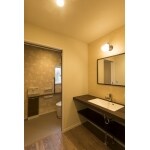 浴室横にあった洗面台を移動し、洗濯機など置いても十分に余裕のある広い脱衣室にしました。