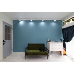 実はこの2枚の写真、ほぼ同じ角度で撮影しています。押入を撤去しお洒落な入口を新設、元々の壁を撤去し、今回はリビング側を広くとのご依頼だった為、壁を手前に移動しました。スポットで壁を照らすことで、雰囲気のある仕上がりになりました。 周囲からの音を遮音する為、間仕切りと天井裏に吹付断熱を施しました。