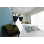 お洒落の好きな息子さんが、アパレルショップの様な空間にしたいと、スポットライトやカラーにこだわりました。 和室で欄間のあった掃出し窓も、工夫してお洒落な採光窓のように仕上げました。グリーンがピッタリですね。 リビング側や上階からの音を気にされていましたので、吹付断熱を施し、防音にも配慮したお部屋になりました。