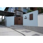 重厚感あふれる組積材のファサードが印象的な外構