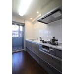 お洒落なグレーの木目調の扉にレンジフードもシルバーでスッキリとしたキッチンに生まれ変わりました。