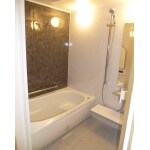 アクセントを浴槽側にする事でおしゃれな浴室に! 鏡を縦型に変更することで目線の高さも変わりました。