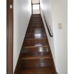 手摺の無い階段でした。 壁も白いクロスでしたが、アクセントの板が古めかしさを醸し出しています。