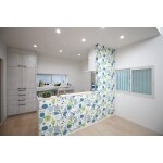 白で統一した、明るくて清潔感のある広々キッチンです。 キッチン扉にはホワイト木目を採用し、柔らかさをプラス。 キッチン前面には、お施主様チョイスのグリーン系のクロスをあしらいました。 とても爽やかな雰囲気で癒されます。 カップボードで収納もバッチリです。