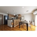 I型の対面キッチンに変更し、奥に勝手口を新設しました。