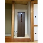 玄関ホールの廊下には開口枠がすでにあるため、アウトセットの片引戸を取り付けプライバシーを確保。違い棚と地袋を撤去。縁甲板を造作で取り付け、壁下地を上張りのうえクロスを張り、コンセントを分岐増設し仏間にしました。