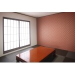 リフォーム後はダークブラウンをベースにアクセントの効いたメリハリのある空間をご提案しました。アクセントにはえんじ色の市松模様クロスをセレクト。 畳は縁なしのダークブラウン、障子の格子デザインは縦格子に変更し、よりシャープなイメージへ。