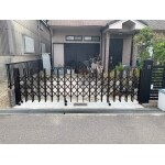 伸縮門扉を交換しました。 駐車場前の割れていたタイルを撤去し、土間打ちに。