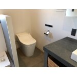 リモコンの色や形、紙巻き器などにもこだわり、サニタリールームに合うスタイリッシュな空間となりました。