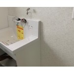 新規洗面化粧台です。 ひろびろ使えて、お掃除もしやすい仕様となっております。