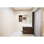 間取り変更により大幅にスペースを拡げ、洗濯機も置けるようにしました。