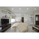 畳スペースを解体、洋室との間仕切りを取り払って、広いLDKを作りました。 間仕切り戸を付けて、LDKともともと洋室だったスペースは状況に応じて仕切れるようにしました。
