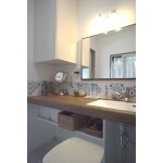 リフォームの動機の一つは洗面室づくり、おしゃれで居心地のよい洗面室でスキンケアやメイクなどをゆっくり楽しみたい。洗面室が寒いというのも悩みでした。