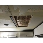 雨漏りで腐ってしまった天井の下地を部分的に直し、新しくクロスを張って仕上げました!