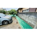 防草シートのご提案として、劣化を抑えられ破れにくい耐久性のある商品を選定しました。 年齢も80代なのでメンテナンスなどがいらない丈夫なもので、ピン施工時にもプレートを使用するなど工夫しました。