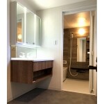 洗面化粧台を造作することも可能ですが、費用が抑えられ、お手入れ面も優れているパナソニックのシーラインをご提案しました。