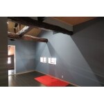小屋裏を現しとし、天井には板、壁にはクロスを張っています。照明光によって出来る梁の影が美しい空間となりました。