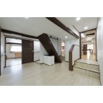 土間スペースに新しく床を作りました。クッションフロアー仕上げで、滑りにくく柔らかいので安心です。 母屋と増築部のあいだにある段差は構造上なくすことができないので、階段とスロープを作りました。 各部屋の入り口の段差は解消しました。