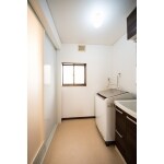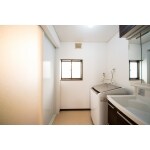 戸の位置、洗面台等のレイアウトを変えて広く使えるよう工夫しました。 洗面化粧台、内装を新調しました。