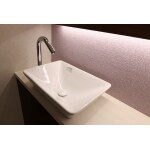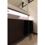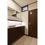 当初は個室トイレと手洗いスペースの間仕切りを取って広々としたスペースにする案もありましたが、おばあ様にとって使い慣れた配置が一番良いのでは、という事で、配置はそのまま残す事にしました。 手洗いの水栓は自動水栓を採用したので、便利で衛生的にご利用いただけます。 当初からご要望にあった間接照明を手洗いカウンターの上部に設けた小さな棚に設置して、雰囲気の良い手洗い空間となりました。 空間の照度が不足してしまわないよう、照明計画には配慮して、実用性と意匠性の調和が取れた素敵な空間に仕上がりました。