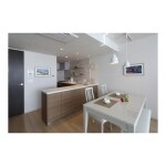 タイル張りを施すことでシックな雰囲気に仕上げ、「見せる収納」として壁面カウンターを設置しました。