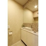 ゴールドの壁紙とタイルで上質なトイレへ