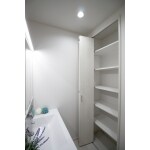 明るく広々とした、清潔感のある洗面室に仕上げました。 収納棚を設置することにより、お風呂上りに使うタオルや洗濯用品等、たっぷりしまっておくことができて大変便利です。