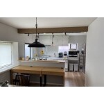 既存利用できるところは残し、必要な部分のみ改修を提案。 キッチンの間仕切り壁は撤去し、ll型のキッチンで対面型に改修。 極力ローコストでほぼ室内全面改修を実現できました。