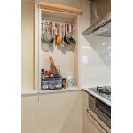 ご希望の設備を採用させていただきました。独立していたキッチンを対面式キッチンにすることで、リビングにいるご家族との会話もお楽しみいただけるキッチンとなりました。 収納部は、コンロ横に調理器具や調味料を格納するスペースをご提案させていただきました。ロールスクリーンをつけてオープンキッチンでも人目の気にならない収納部となりました。 収納に悩みがちなキッチンスペースを一工夫し、料理する時間をより楽しんでいただける空間作りを意識いたしました。