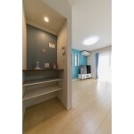 間仕切りを無くし、一体にしたLDKのアクセントカラーはブルーで鮮やかに。