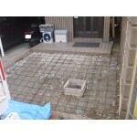 玄関先の出入り口の塀等を撤去し、二輪駐車スペースをご要望でした。 まず、撤去工事としてカッター工、門塀撤去・斫り工。花壇撤去、土間コンクリート撤去。鋤取り工を施し、スロープ土間コンクリートの改修工事で砕石敷均し転圧工、ワイヤーメッシュ筋敷設、刷毛仕上げの土間コンクリート工事を終え完了させていただきました。