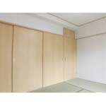 畳は新しく作り替えました。 襖だった間仕切りは3枚引違戸にお取替え。 引違戸にしたことで部屋がナチュラルな洋風テイストに。