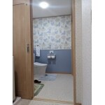 既設の洗面所・トイレを洗面所1室に間取り変更をしました。トイレは別室の一部を改装しました。段差をなくし、基本すべて引戸で使い勝手の良いプランにしました。トイレへ直接行き来できます。