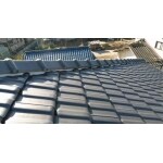 陶器瓦の屋根は塗装は必要ない旨を説明。 棟の漆喰のやり替えと、釘からパッキン付きのビス止めに替える提案をいたしました。 瓦職人さんの技が光る、きれいな漆喰に仕上がりました。