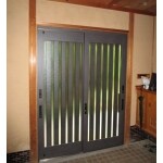 ほこりが溜まりにくく、和の空間に合う縦スリットの玄関引違戸を提案しました。