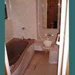1616サイズのシステムバスで豪華な人工大理石浴槽を採用しました。1600サイズでご主人も足を伸ばして入浴できます。