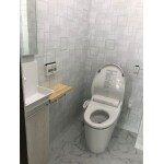 洋式トイレにリフォーム希望。 現在はドア上部に棚をつけてその上に収納している。 お客様も使用するので手洗いも欲しく、尚且つ収納スペースも確保したい。